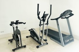 Die 70m2 große Terrasse mit Südwest-Ausrichtung hat einen Direktzugang zum Gemeinschaftspool sowie zum gemeinschaftlichen Fitness- und Saunabereich. An die Terrasse anliegend gibt es auch noch einen Haushaltsraum mit Waschmachine und Trockner. Zum Apartment gehört auch ein Tiefgaragen-Stellplatz mit Kellerraum.